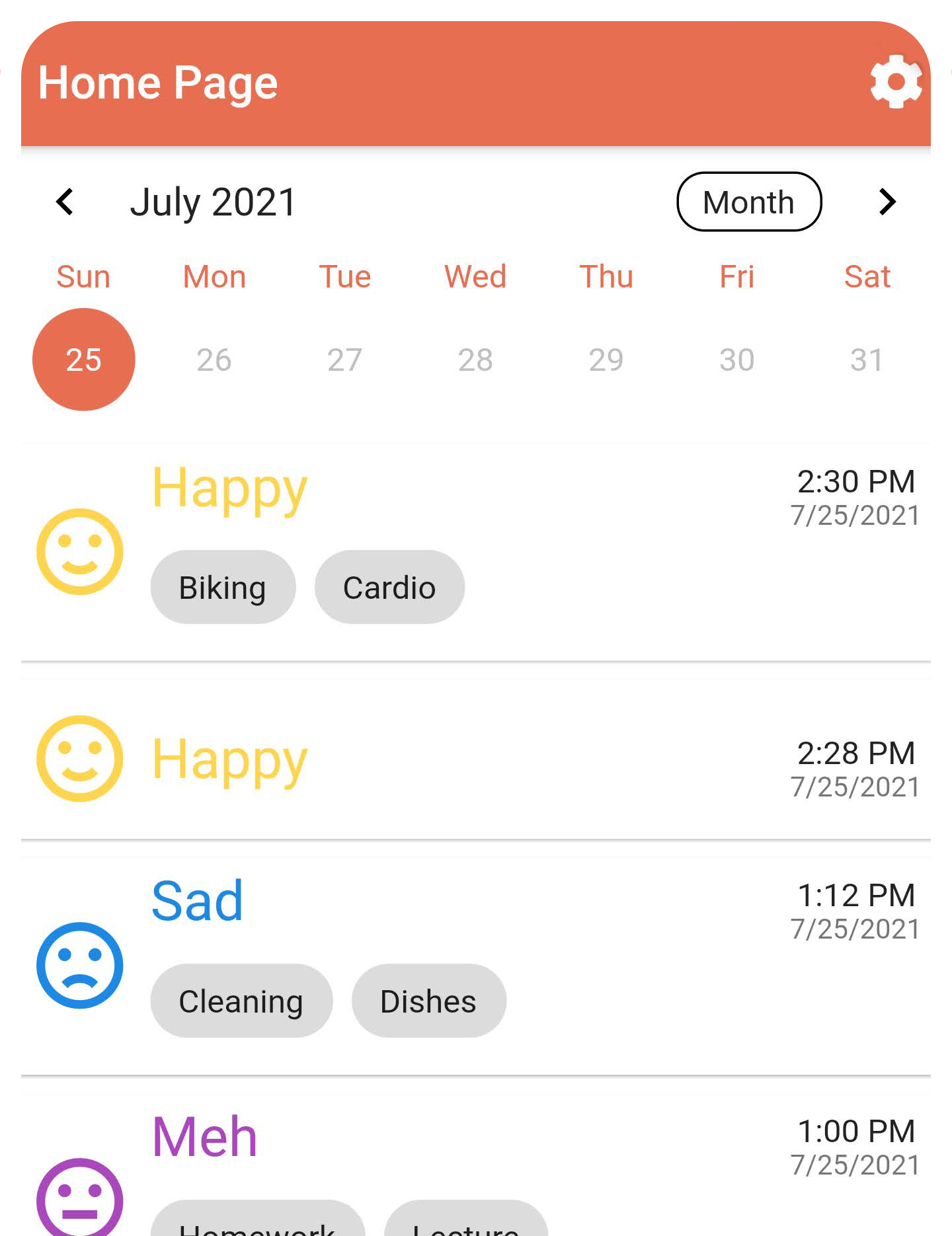 Pick your mood and labels. Not feeling a mood, or want to expand? You can create or edit existing moods to better track you feelings. Even change their icons to better express how you're feeling.